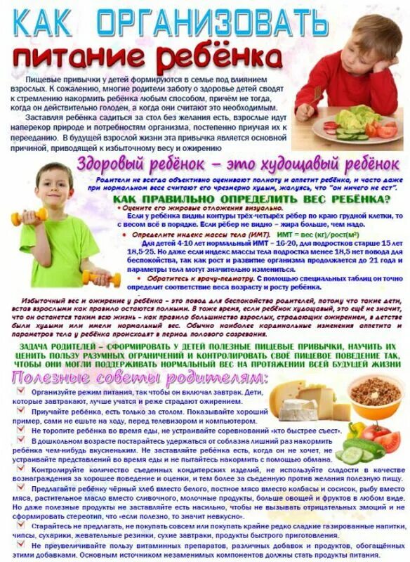 Информация о правильном питании детей дошкольного возраста